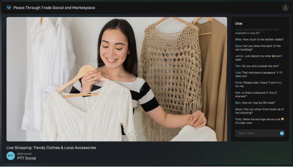 The Peace Through Trade Social Marketplace is a decentralized Web3 platform for streaming, digital commerce, and community participation. Think of it as the second layer built on top of the PTT blockchain. Merchants can set up storefronts. Creators can share content. Users can transact peer-to-peer without middlemen taking a cut. All of it powered by PTT Coin.